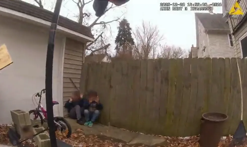 Police bodycam video shows the arresting officer drawing his gun on the 8-year-old and the 11-year-old males, who were cowering against a fence, and ordering them on their stomachs. One can be heard whimpering.