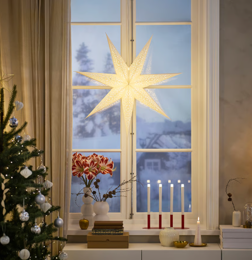 I also grabbed a couple of packs of these inexpensive white paper decorations. I also love natural textures and fibers, like paper, wood, and stone. This year, Ikea has several variations on the paper theme.