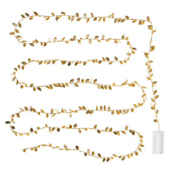 I also like this red lantern, which they have in two sizes, and these lovely leafy gold light strands — a touch of gold or red can really pop a color scheme — but decided not to buy them as I had reached my spending limit on other items. Plus, I have two other lanterns that hold candles and more LED twinkle lights than I have ever used all at once.