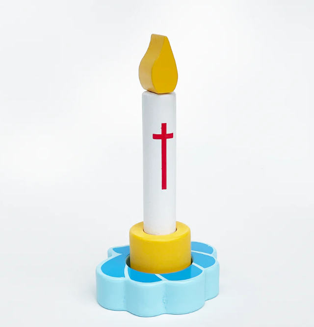 I can also recommend Wicking Vicar’s play baptism candle set, another great gift for a young godchild. We like to give godchild gifts for Christmas and baptism days/birthdays (in our circles, pious parents tend to baptize their babies about as soon as mom can physically get to church, so baptism days are very close to birthdays).