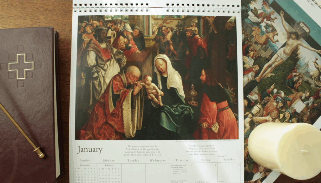 All the Household is a Protestant liturgical resource. Their liturgical wall calendars are extremely popular and tend to sell out ($36). They run December through December to match the liturgical year, and buying one this week will perfectly time your planning for a fresh church year. Catholic All Year offers a similar calendar with the Roman saints calendar as a printable download.