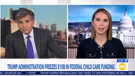GEORGE STEPHANOPOULOS: The Trump administration freezes $10 million in federal funds aimed to help hundreds of thousands of families pay for childcare. Five states with Democratic governors targeted, no states with Republican governors. Now, who will get hit the hardest as child care costs are rising for Americans families?