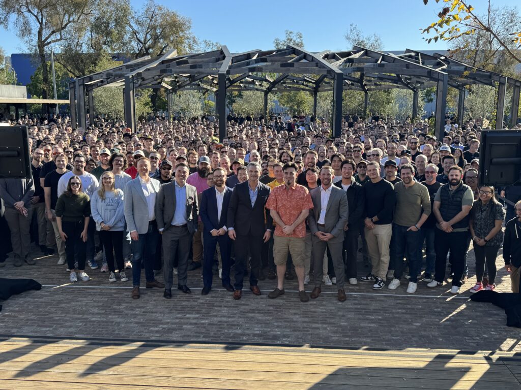 Hegseth with Anduril Founder Palmer Luckey with Anduril staff behind