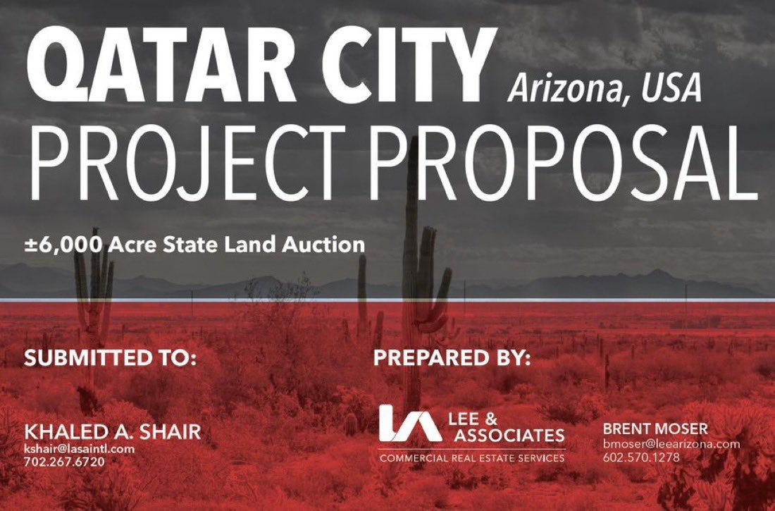 A glossy brochure labeled “Qatar City, Arizona, USA” has begun circulating online. It shows a 6,000-acre state land auction and a massive proposed development project strategically placed near Arizona’s TSMC high-tech zone. The name? Qatar City. The plan? Unclear. The funding? Opaque. The timing? Disturbing.