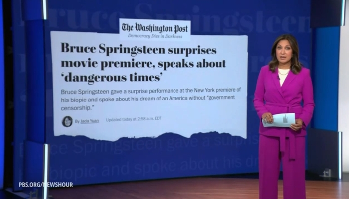 Amna Nawaz: At a surprise New York film festival performance last night, rock legend Bruce Springsteen publicly expressed concern for the political climate in the country, saying — quote — “We’re living through particularly dangerous times.”