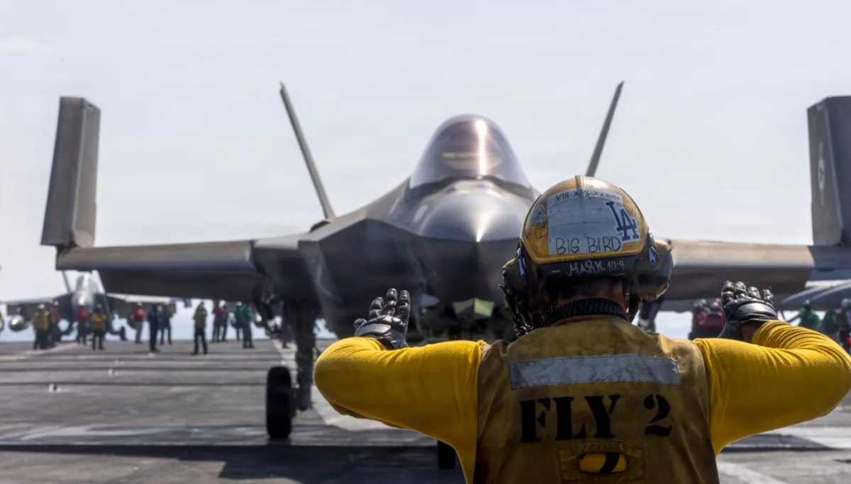 This image provided by U.S. Central Command shows a F-35C Lightning preparing to launch from the USS Abraham Lincoln (CVN 72) in support of Operation Epic Fury, on Saturday, Feb. 28, 2026.