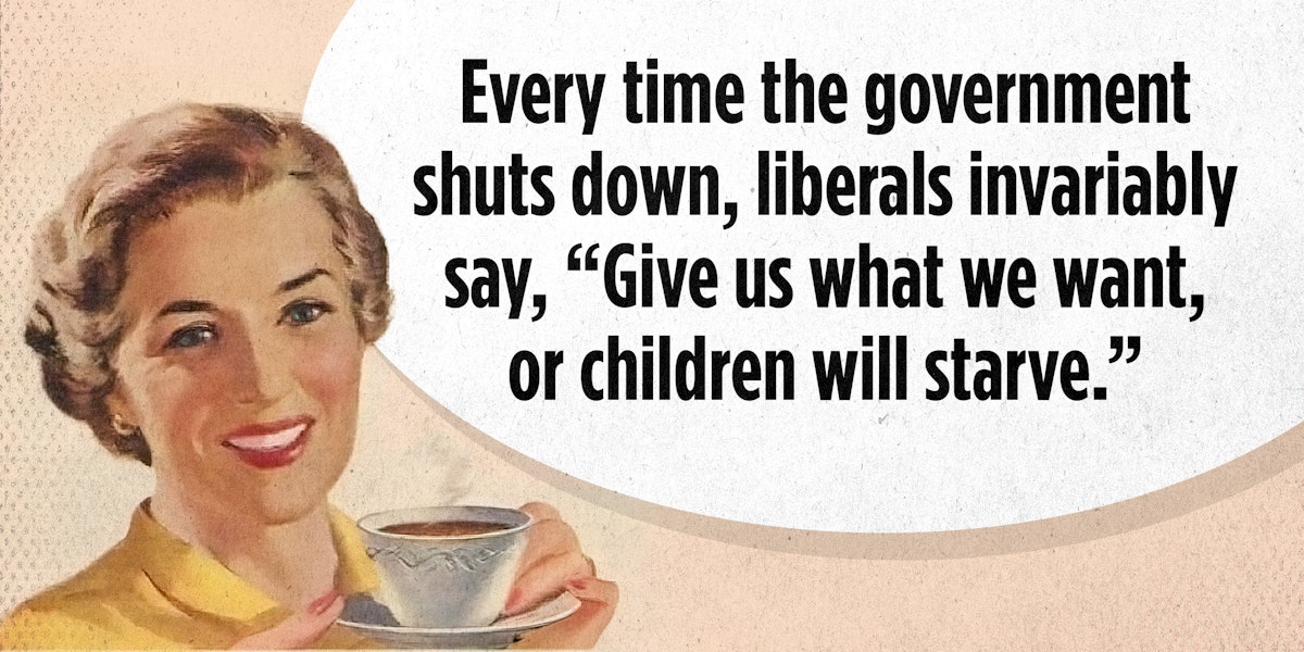 Every time the government shuts down, liberals invariably say, “Give us what we want, or children will starve.” To a foreign onlooker, it would sound as if millions of Americans are one missed EBT recharge away from death, given how casually the media invokes “starvation” whenever Congress hits a budget stalemate.
