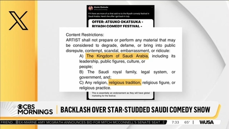 WILLIAMS: One comedian who boycotted the Saudi festival posted the term she rejected including a ban on making fun of the Saudi government or religion.