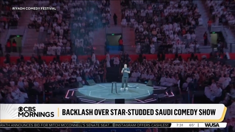 Co-host Gayle King set the table: “Some of the biggest names in comedy have been performing at a very controversial festival in Saudi Arabia this past week and they’ve been criticized by some for appearing to give legitimacy to a government with a very troubling human rights record. Holly Williams, who has reported inside Saudi Arabia many times, says the festival has divided the world of stand-up comedy.”