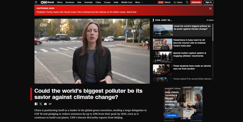 CNN International Senior News Desk Reporter Simone McCarthy’s header for the segment on the CNN website was almost too stupid to believe it wasn’t a Babylon Bee headline: “Could the world’s biggest polluter be its savior against climate change?”