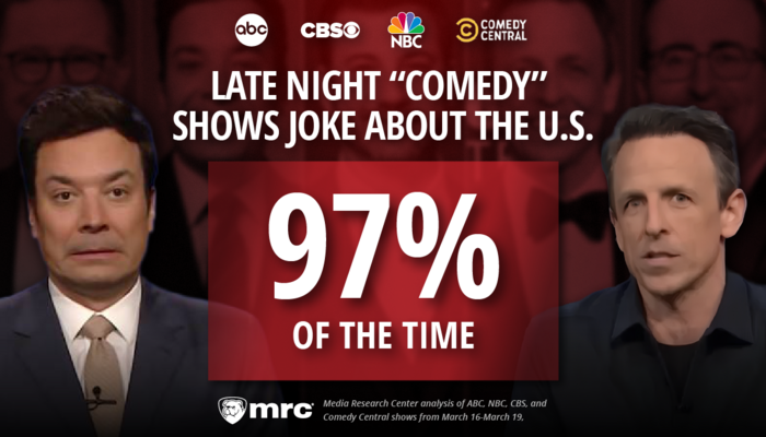 In the first week of the Iran war, 94 percent of the jokes from the late night comedians about the war targeted the American side. By the third week, that percentage jumped to 97 percent, according to a new Media Research Center study.