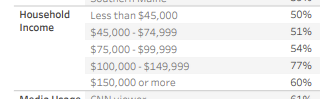 The reality? He does best with those making over $100K a year and his worst numbers are with those making under $45K a year