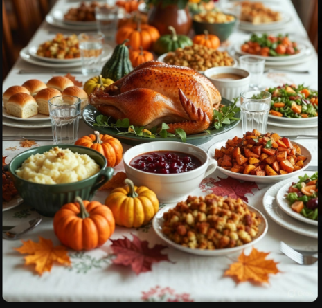 These items include: “turkey, cubed stuffing, sweet potatoes, dinner rolls, frozen peas, fresh cranberries, celery, carrots, pumpkin pie mix and crusts, whipping cream and whole milk.”