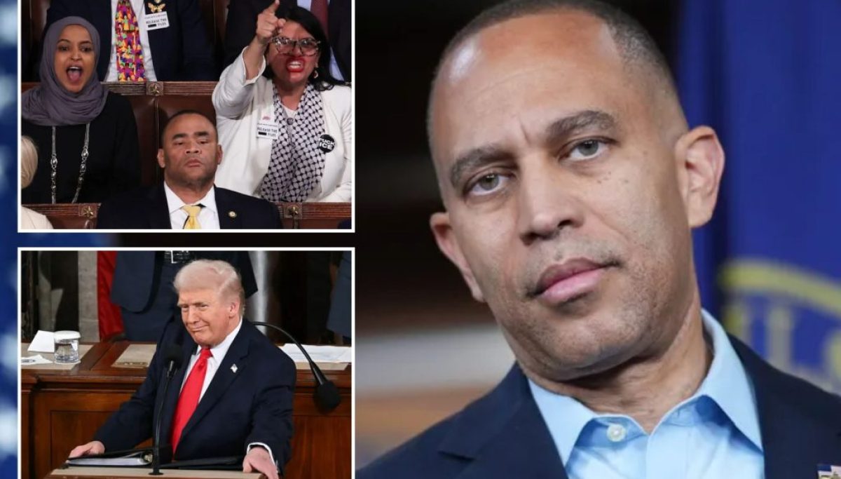 House Minority Leader Hakeem Jeffries (D-NY) failed to keep his conference in check on Tuesday night during a raucous State of the Union speech that saw Donald Trump bait Democrats into repeated shouts and taunts.