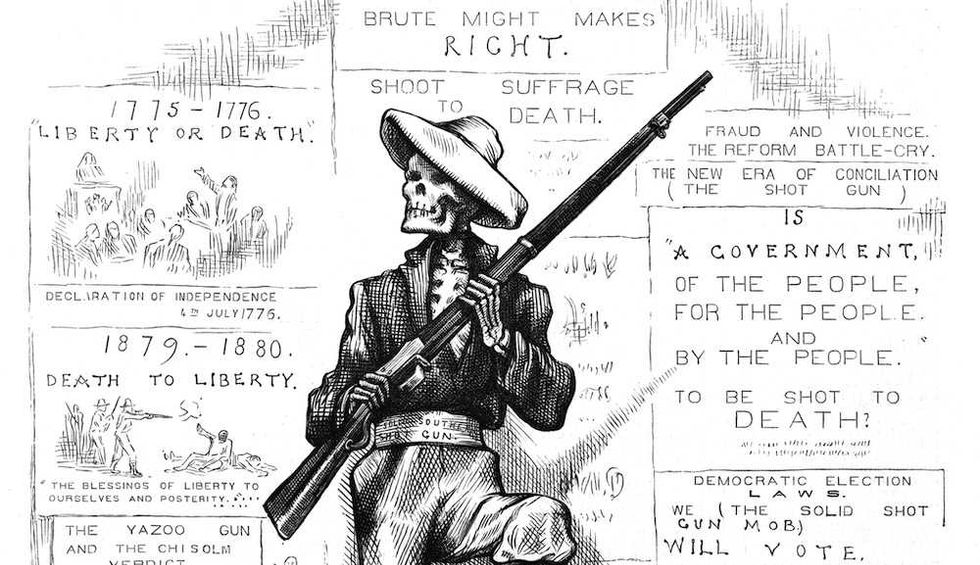 The last obstacle to that counterrevolution was federal protection of black voters. During the disputed 1876 election, President Ulysses S. Grant stationed troops at polling sites across the South to deter fraud and Ku Klux Klan violence. Democrats in South Carolina vowed to “wade in blood knee-deep” if necessary to reclaim power.