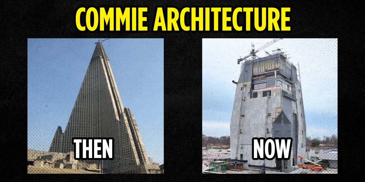 When it comes to butt-ugly architecture, it’s hard to beat the Ryugyong Hotel. Situated smack-dab amid the authoritarian dreariness of the North Korean capital of Pyongyang, the so-called Hotel of Doom was begun in 1987 but never finished, and it stands today as an unoccupied 105-story testament to cold, hard commie filth.