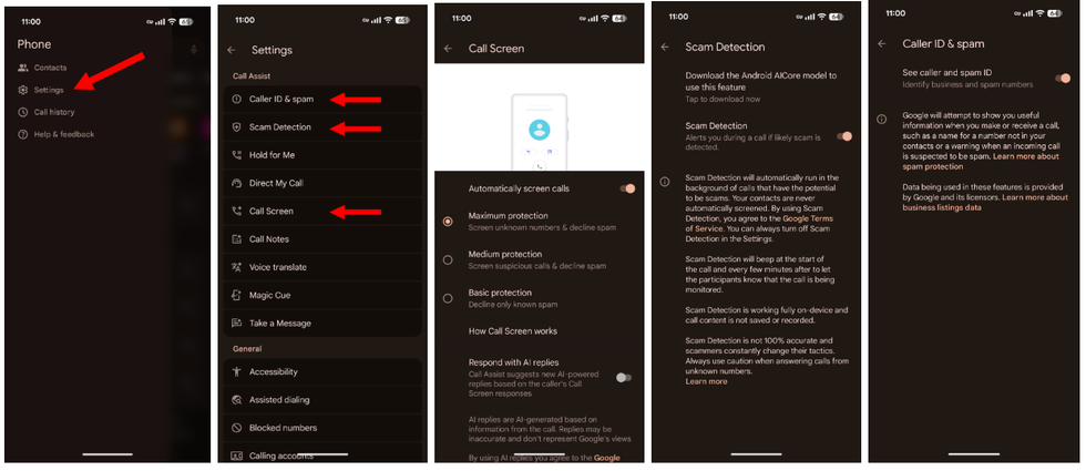 To enable Call Screen and other useful spam-blocking features, open the Phone app on your Google Pixel and tap the hamburger menu in the top left corner. Under Call Assist, enable Caller ID & Spam to identify spam numbers. You may want to check Spam Detection next, which will alert you, in real-time, if a caller is trying to scam you during an active conversation. Finally, enable Call Screen to automatically review your incoming calls and manage them based on one of these three settings: