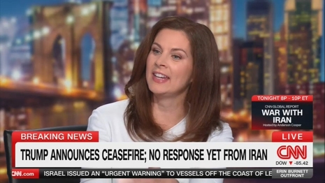 CNN host Erin Burnett reflected the tone of Democrats in social media by flipping from outrage at Trump’s threats to destroy Iranian infrastructure to claiming he’s a coward when they announce a temporary ceasefire: “Trump has backed off. And there will be some who will call it, you know — ‘TACO: Trump Always Chickens Out’ — which is making way too light of it. But it is also a truth, which is that he makes giant threats that he does not follow through on.”