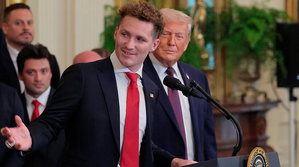 Trump praised the team on Thursday, shaking hands and listing accomplishments as he remarked that many of the players and staff would be participating in the 2026 Winter Olympics in Italy, many of them representing the United States.