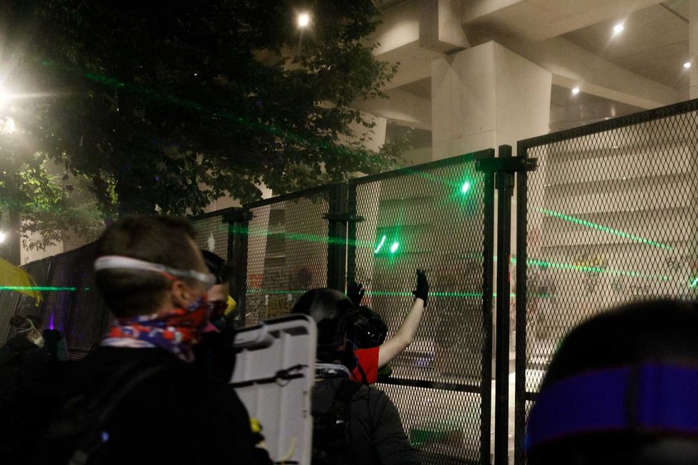 Journalist Andy Ngo captured video showing Portland protesters using high-powered laser pointers at that time.