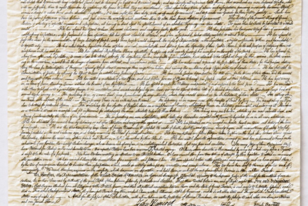 “We hold these truths to be self-evident, that all men are created equal, that they are endowed by their Creator with certain unalienable Rights, that among these are Life, Liberty and the pursuit of Happiness. That to secure these rights, Governments are instituted among Men, deriving their just powers from the consent of the governed, That whenever any Form of Government becomes destructive of these ends, it is the Right of the People to alter or to abolish it, and to institute new Government, laying its foundation on such principles and organizing its powers in such form, as to them shall seem most likely to effect their Safety and Happiness,” it says.
