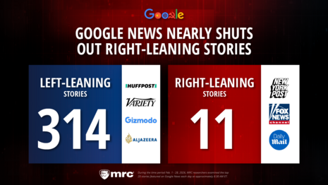 Much of this is to be expected from Google, which has a long history of bias and censorship. But Google News made no discernible effort to change course even after the release of MRC’s widely reported Apple News study outlining leftist bias, which prompted the FTC to send a letter to Apple CEO Tim Cook.