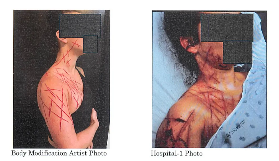 They also obtained a photograph of the design for the body modification that Greene requested from the scarification artist. They matched the wounds photographed by an officer.