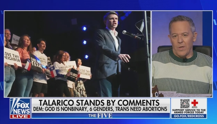 Chances are you won’t find a more openly ‘progressive’, or flat out radical leftist than Democrat Texas State Representative James Talarico, who is his party’s nominee for the U.S. Senate race in 2026, who has said, God is nonbinary, there are 6 sexes, radicalized white men are the greatest domestic terrorist threat in our country, and our border should be like a front porch, it should have a welcome mat out front and a lock on the door. There is more, but none of that stopped Fox News‘s Jessica Tarlov from defending Talarico Tuesday on The Five, and Greg Gutfeld wasn’t having it.