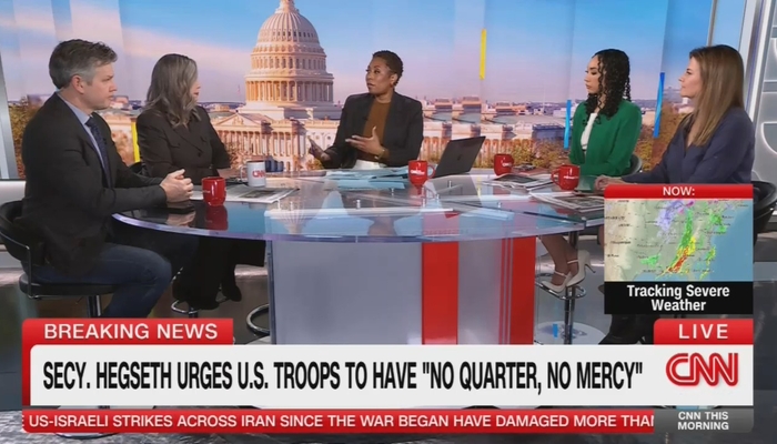CNN This Morning’s main panel discussion on Monday focused on Hegseth’s “no quarter, no mercy” comments, as Cornish continued her complaints over Hegseth commending of the US Military’s “lethality.” pic.twitter.com/X534UqhFOt