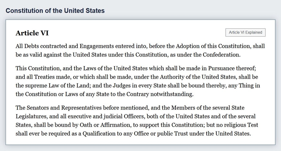 “Article VI, Paragraph 2 of the U.S. Constitution, still clearly states: ‘This Constitution, and the Laws of the United States which shall be made in Pursuance thereof … shall be the supreme Law of the Land.’
