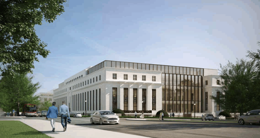 In 2018, the Fed acquired a next-door building that was built in the 1930s and has been occupied by a variety of tenants, including the Department of the Interior. Like the Eccles Building, the structure (now called the East Building) was built in an understated neoclassical style.