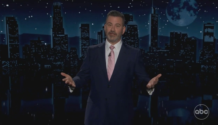 Kimmel teed up a clip of Trump in the Oval Office with MBS and reporters by declaring, “Naturally, Trump is pulling out all the stops for his trillionaire friend, who also happens to be doing business with Don Jr. and Eric.”