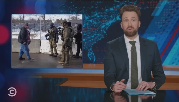 Reacting to a part of the video that showed ICE agents firing pepper balls at a man, Klepper reacted, “Holy shit! I don’t know what’s more terrifying: them hitting that guy point-blank with pepper balls or him not even flinching at them! Although, to be fair, it’s nine degrees out there. The pepper spray is only warming him up.”