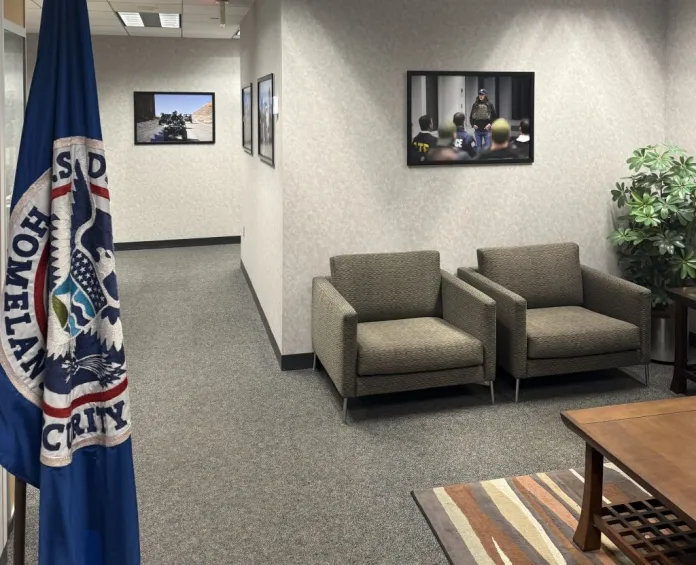 Pictures in former Homeland Security Secretary Kristi Noem’s office at U.S. Customs and Border Protection headquarters in Washington feature the secretary during her trips with federal law enforcement. (Courtesy images)