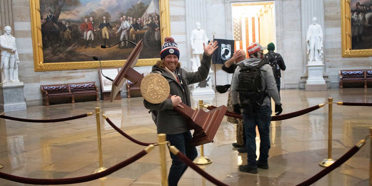 The man who famously carried off the lectern owned by Democratic Rep. Nancy Pelosi of California during the Jan. 6 rioting is running for election in Florida.