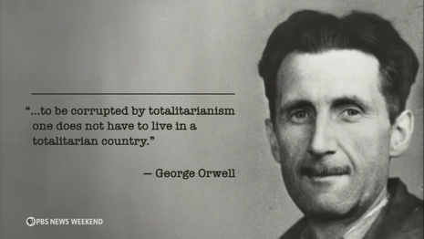 JOHN YANG: George Orwell’s writings warning of the dangers of totalitarian and authoritarian states gave the English language the term Orwellian. A new documentary argues that Orwell’s greatest fears are coming true….