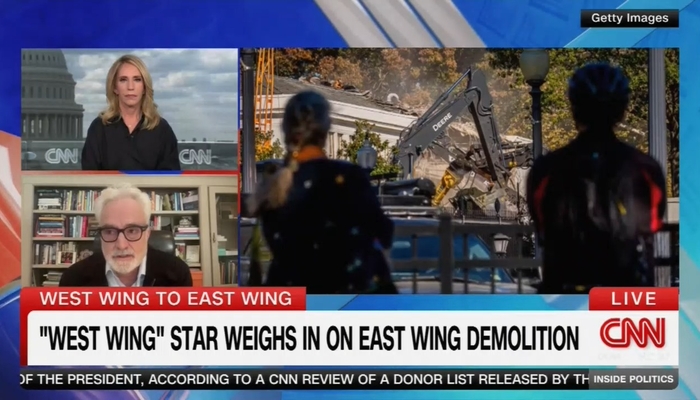 [ON-SCREEN HEADLINE: West Wing to East Wing; “West Wing” Star Weighs in on East Wing Demolition]