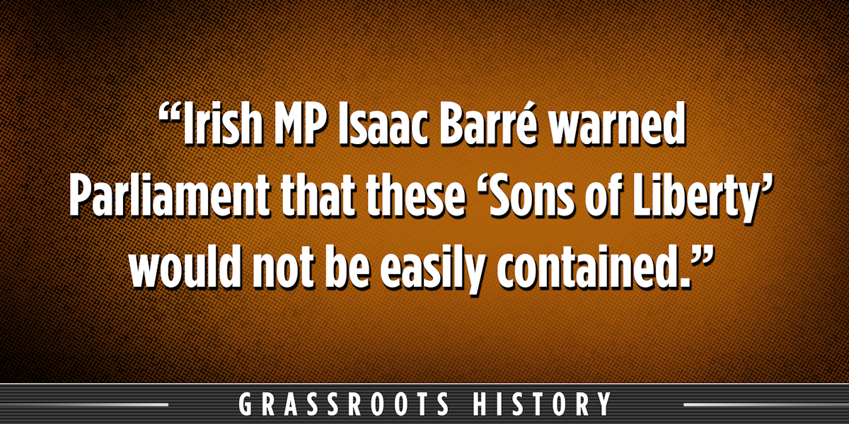 When the news reached Parliament on February 6, 1765, Irish MP Isaac Barré, a veteran of the French and Indian War, warned Parliament that these “Sons of Liberty” would not be easily contained. Within months, the semi-secret society had spread from Massachusetts, New York, Connecticut, Rhode Island, and New Hampshire to New Jersey, Maryland, and Virginia. A new name, Sons of Liberty, unified the members.