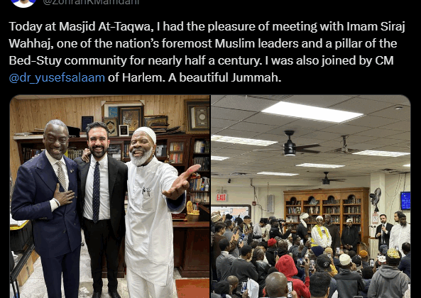 Siraj Wahhaj had previously donated to Zohran Mamdani’s campaign and posted a video endorsement. Even as a number of papers were preparing to run stories linking Mamdani to associates of Wahhaj, he sprung the trap by tweeting a photo of himself with the imam.