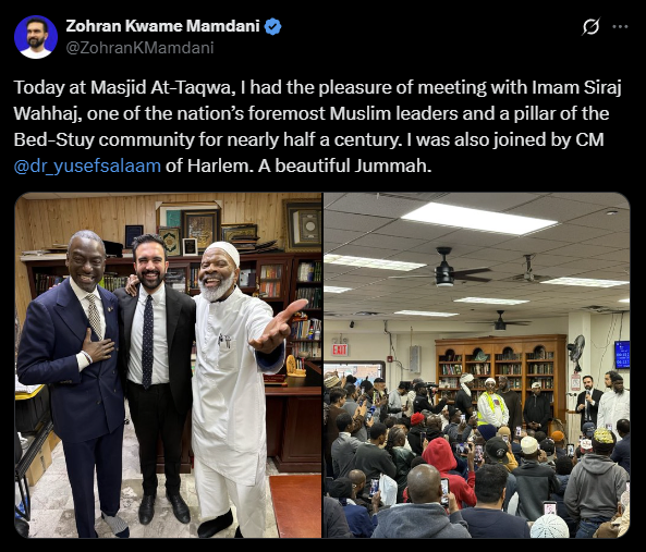 Siraj Wahhaj had previously donated to Zohran Mamdani’s campaign and posted a video endorsement. Even as a number of papers were preparing to run stories linking Mamdani to associates of Wahhaj, he sprung the trap by tweeting a photo of himself with the imam.