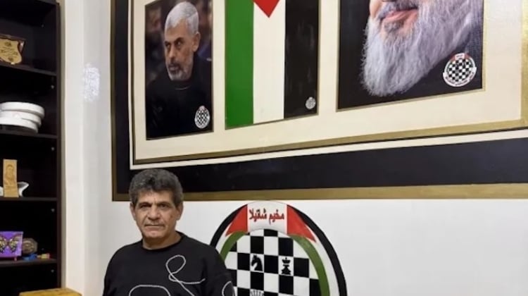 The chess club’s director directly addresses the portraits (one of which Metro erroneously states is Ismail Haniyeh rather than Sinwar):