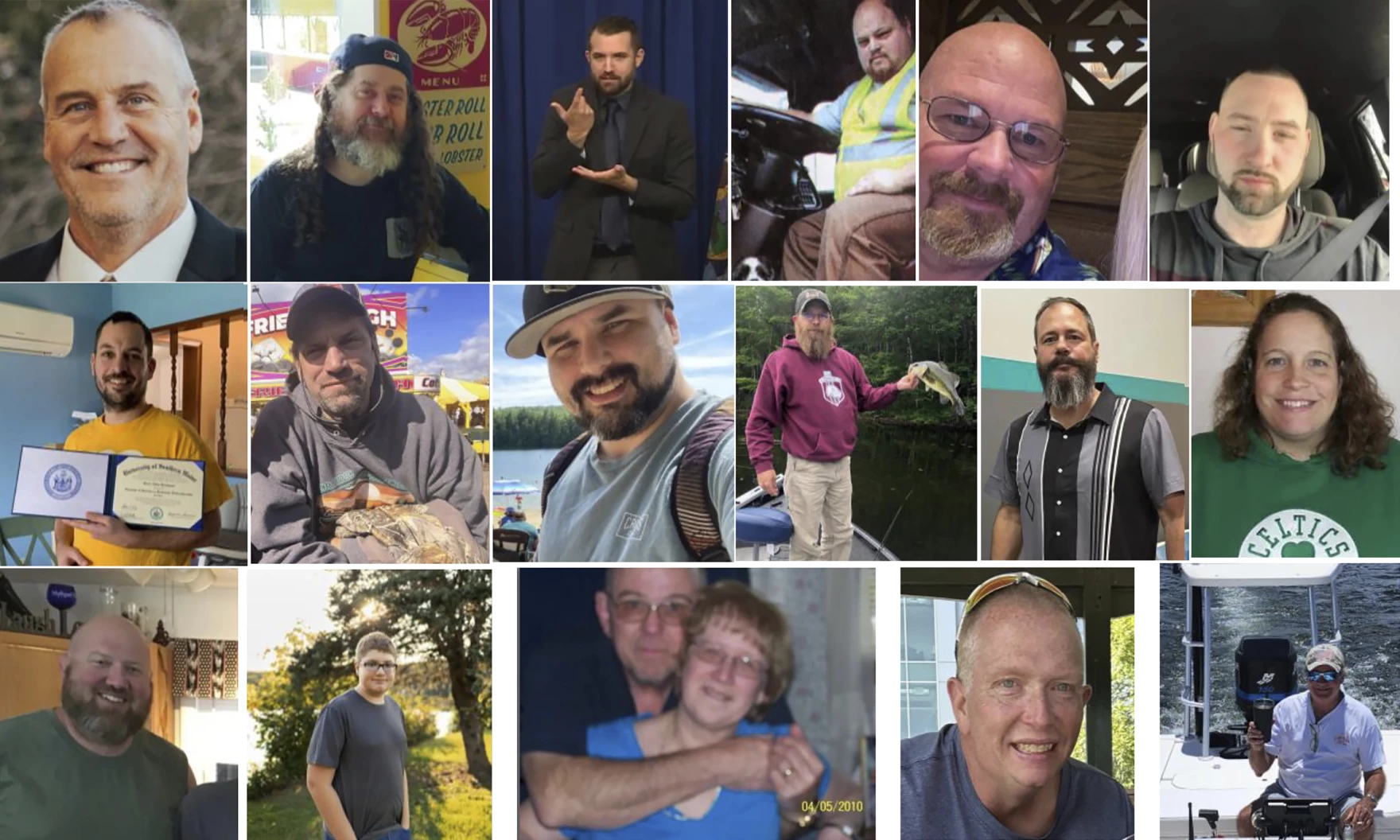 Meanwhile the victims had such traditional Somali names as Joseph Walker, Bryan MacFarlane, Joshua Seal, Peyton Brewer-Ross, Ronald Morin, Max Hathaway, Stephen Voezzela, Thomas Conrad, Michael Deslauriers, Jason Walker, Lucille Violette, William Brackett, Aaron Young, William Young, Tricia Asselin and Keith Macneir.