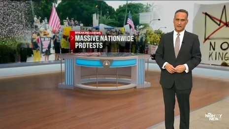 The network newscasts slobbered all over this Saturday event, using very similar language. “Millions” took to the streets! A “massive” nationwide turnout to oppose “what they call creeping authoritarianism.” They sound like they’re reading a press release. “More than 2,700 rallies in all 50 states,” as “organizers estimate seven million people” turned out.