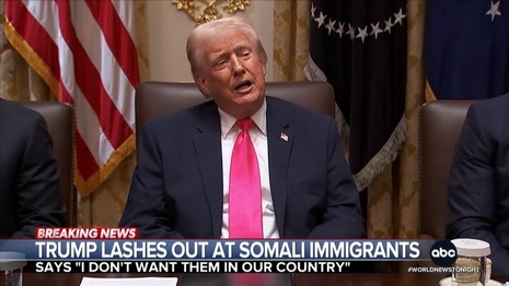 Their first mention on the December 2 World News Tonight was devoid of any context. Anchor David Muir asked chief White House correspondent Mary Bruce to elaborate on “President Trump lashing out at immigrants from Somalia. saying ‘I don’t want them in our country.’”