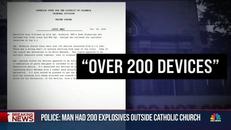Washington, D.C., police on Sunday arrested a man with hundreds of explosive devices outside a church holding a Mass in honor of the Supreme Court. The man had a manifesto that suggested he was targeting the Supreme Court and Catholics, according to court papers obtained by The Daily Wire.