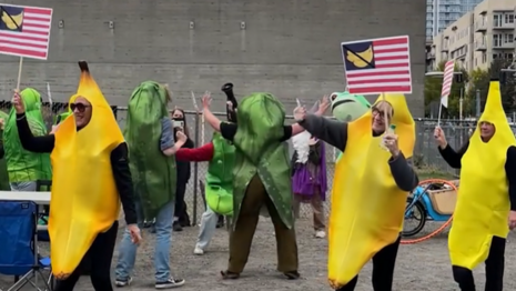 The first paragraph from Times reporters/publicists Anna Griffin and Aaron West: “Animal costumes are the new black.” For Antifa. Get it? Under video of protesters blowing bubbles, the Times gushed: “In Portland 2025, whimsy and merriment have replaced the masked anarchist look of 2020.”