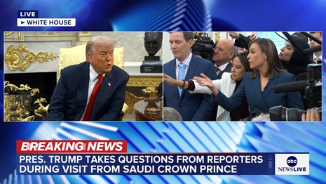 Is it appropriate, Mr. President, for your family to be doing business in Saudi Arabia while you’re President? Is that a conflict of interest? And Your Royal Highness, the U.S. intelligence concluded that you orchestrated the brutal murder of a journalist. 9/11 families are furious that you are here in the Oval Office.