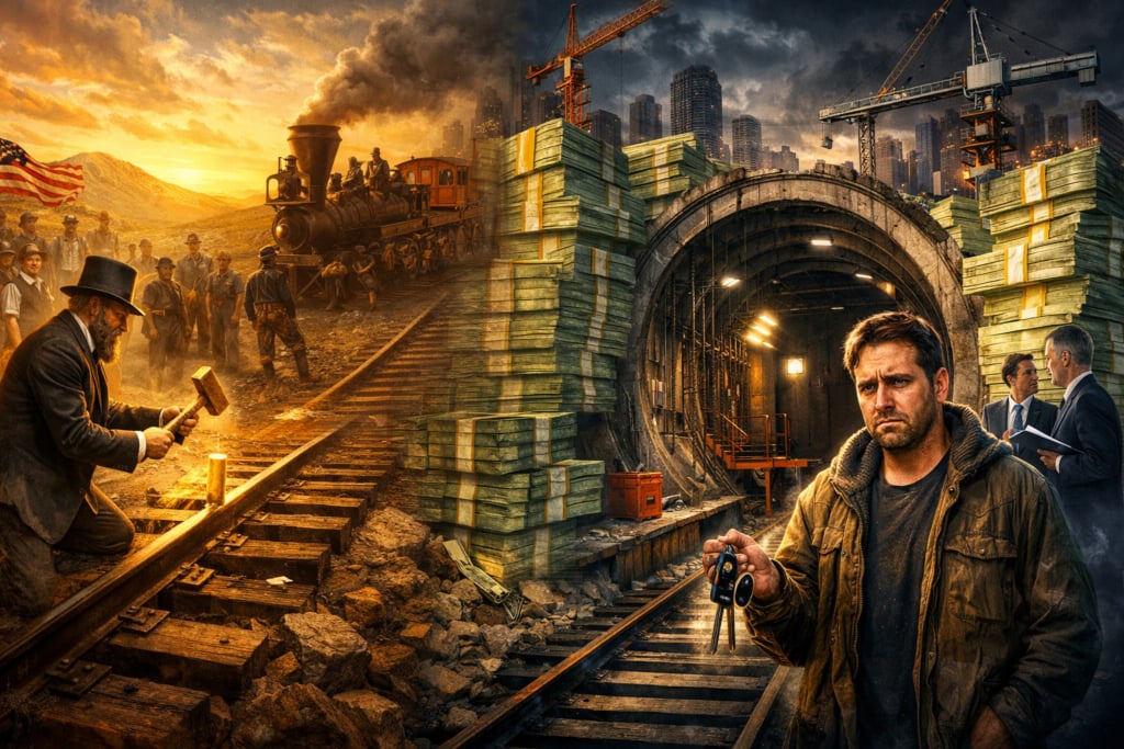 On May 10th, 1869, the first transcontinental railroad of almost 2,000 miles was completed and marked with a ‘Golden Spike’ driven in. Over 150 years and another 2,000 miles later, the New York City subway is struggling to finish its 10 mile Second Avenue line, underway in one form or another since the 1970s, and is suing Trump to help secure funding for $4 billion per mile.