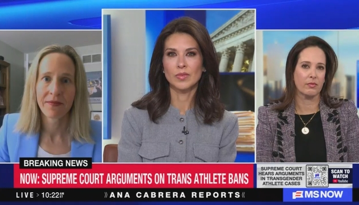 Cabrera asked Rubin, “Transgender rights have been a major political flashpoint. In fact, NPR found that the Trump campaign played attack ads on transgender athletes 15,000 times in 2024. Will those politics play a role at all at what happens at the Supreme Court?”