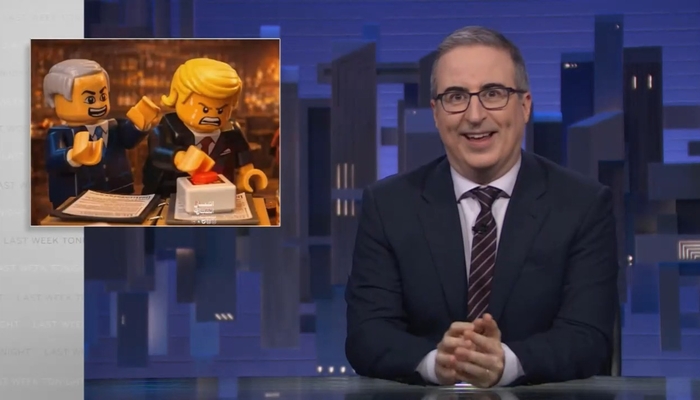 Oliver added, “That video also features the Strait of Hormuz being closed and businessmen crying about oil prices spiking, as well as a Lego depiction of the aftermath of the school bombing, which is surreal. It’s odd for a human rights atrocity to be rendered in Lego, but I guess that’s where we are in this conflict.”